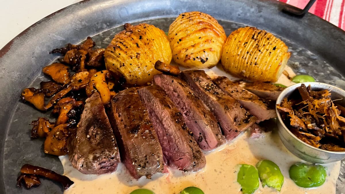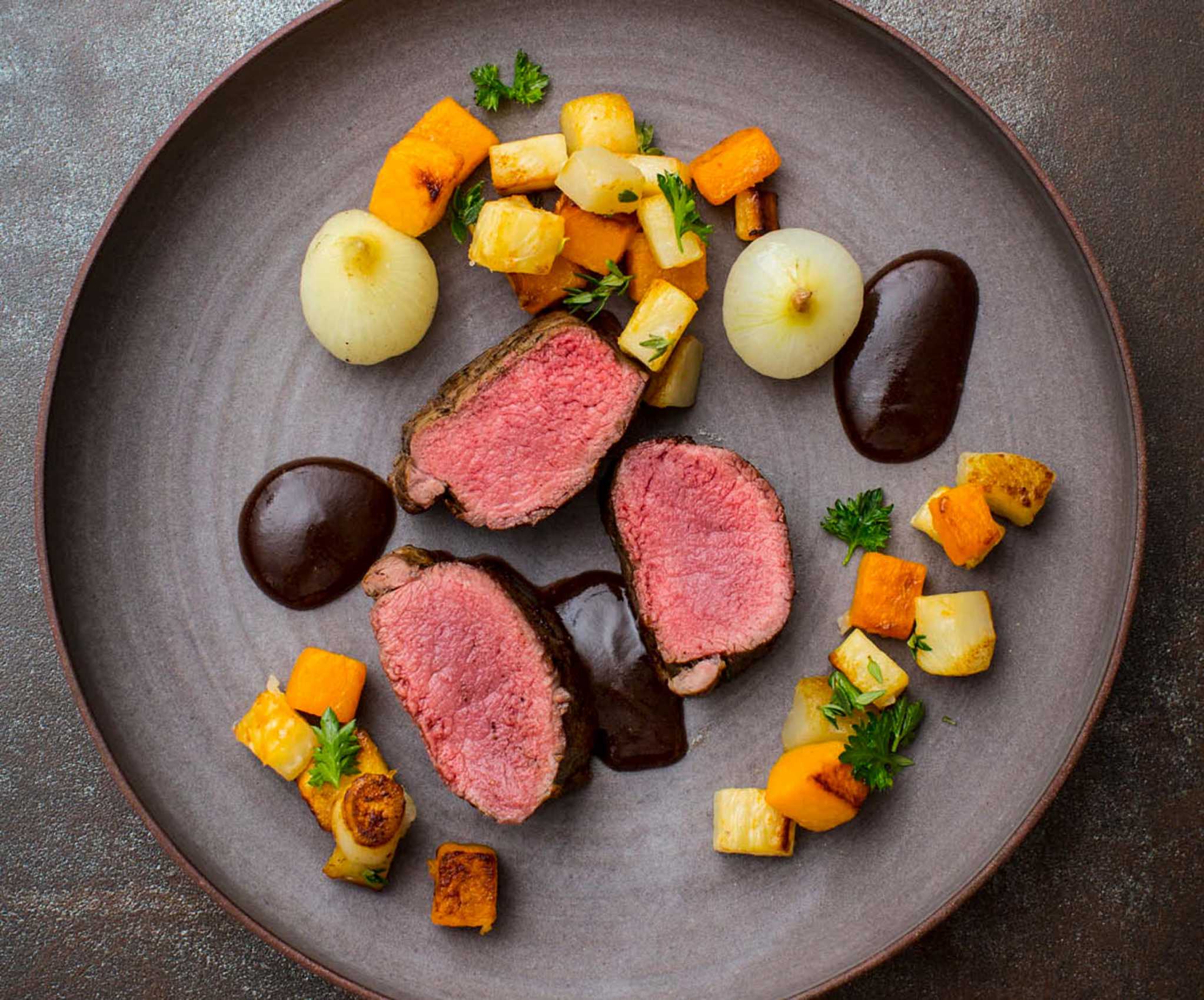 Rådjursytterfilé med brynt smör, timjan och rostade rotfrukter